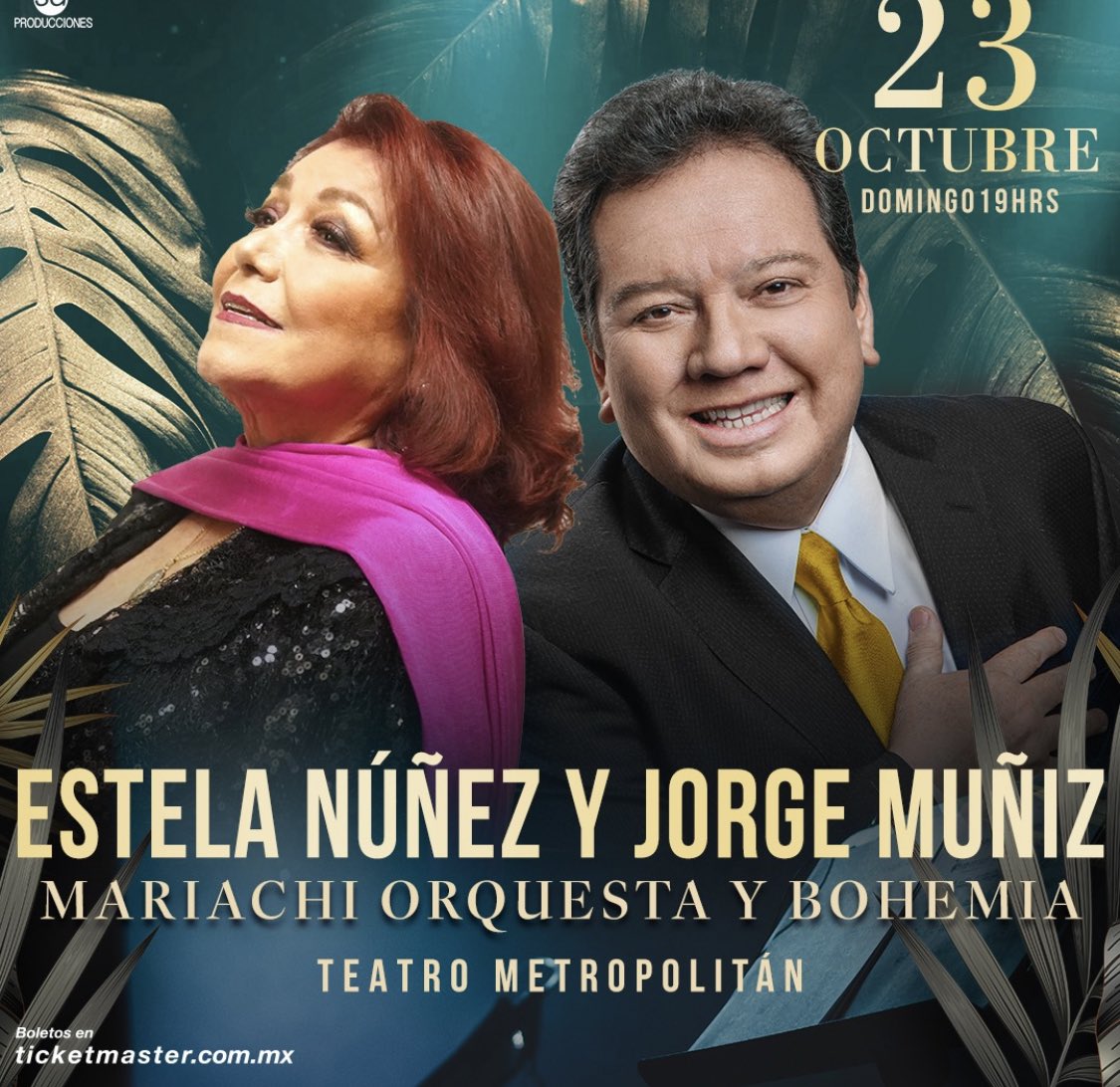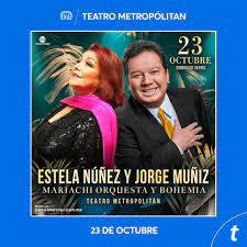 Disfruta la voz de Estela Núñez y Jorge "Coque" Muñiz en una noche de Mariachi Orquesta Bohemia este 23 de octubre en el Teatro Metropólitan.